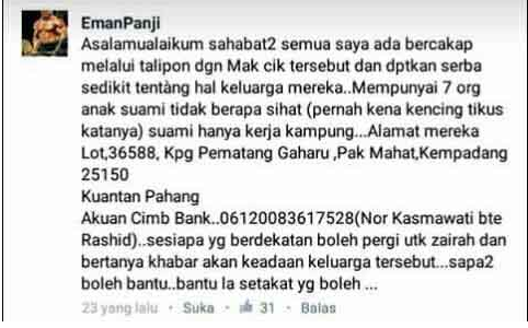 Dalam keadaan yang mendesak dan keluarga perlu disara, si ibu ini