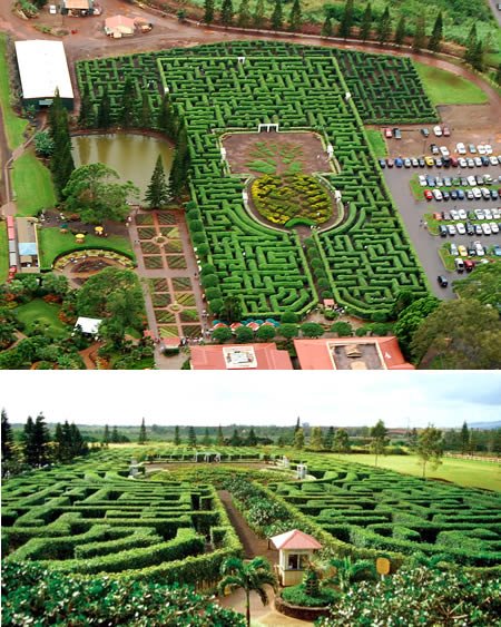 Sekarang kita ke Hawaii, tepatnya di Wahiawa. Di tempat ini ada labirin dengan jalur rumit sepanjang 3 mil, terbuat dari 14.000 jenis tumbuhan yang ada di Hawaii seperti hibiscus, croton, panax, heliconia, bahkan nanas! Tak heran, labirin ini tercatat di Guinness Book of Records 2001.