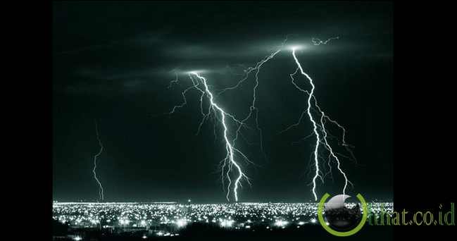 Melihat lampu di perkotaan yang berpendar putih terang memang sangat indah, namun tahukah kamu apa yang bisa menandingi lampu terang perkotaan di malam hari? Itu adalah kilatan petir. Bahkan petir yang membelah langit malam tampak sangat cantik dengan warna putih terangnya. Mengalahkan jutaan lampu rumah atau gedung Unik dan Aneh Terselubung 51.