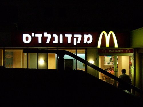 4) McDonald di israel dibuka pada tahun 1993 (lewat berbanding negara-negara lain). Mereka telah membuat pengubahsuaian contohnya dari segi minuman. Mereka menggantikan kopi berkafein kepada teh yang mengandungi polyphenols, iaitu unsur kimia yang berfungsi sebagai antioksidan berkekuatan besar untuk membuang sel rosak dan mencegah kanser. Kita disini masih lagi menggunakan kafein yang berbahaya.