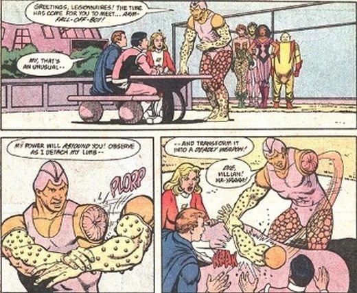 Superhero lain dari DC Comics yang kelihatannya dibuat secara tergesa-gesa adalah Arm Fall Off Boy. Orang ini berasal dari abad ke-30 dan memiliki kekuatan super yang mampu melepaskan kaki dan tangannya sendiri.