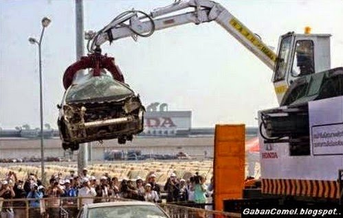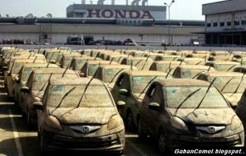 Berikut ini foto-foto yang jarang berlaku kemusnahan 1000 lebih kereta Honda di Thailand.