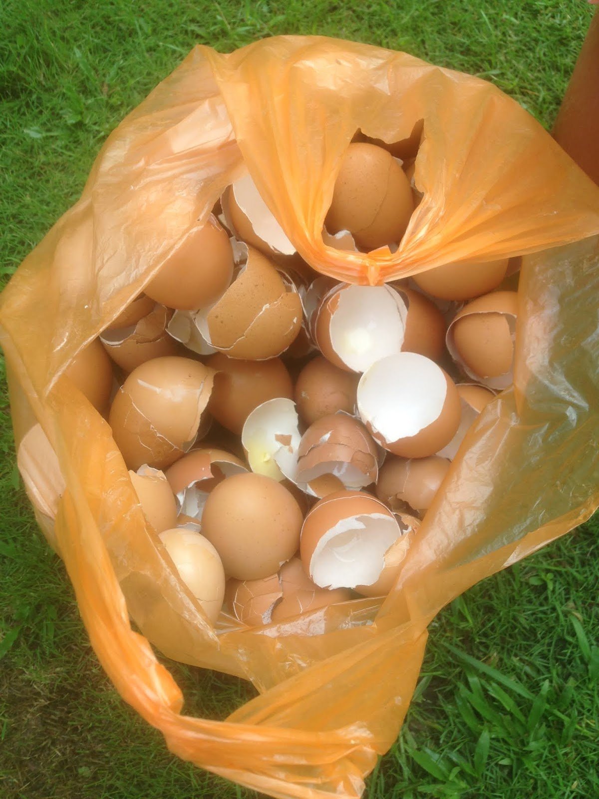 Kulit telur dijemur, dihancurkan dan di tabur ke batas timbun