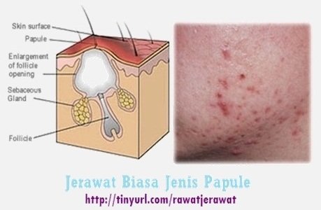 Papule merupakan benjolan merah dan keras yang timbul pada permukaan kulit. Atau mungkin ada di antara anda lebih faham jika saya katakan ia seperti bintat. Saiznya agak kecil saja. Tidak melebihi 5mm pun.
