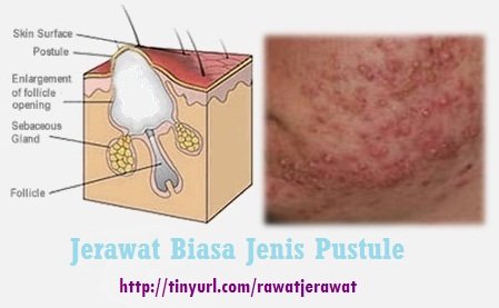 Keadaan jerawat pustule juga kelihatan bengkak seperti jerawat papule tetapi berbentuk kubah. Ia juga lebih sensitif.
