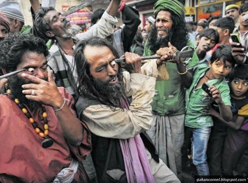 Seperti yang terjadi di India, negara yang penduduk lebih dari 1 bilion tersebut, ternyata mempunyai tradisi yang banyak dari pelbagai soal aspek ritual yang terbilang sangat unik. Misalnya saja ritual jalan kaki di atas bara api yang membara, ritual bertarung melawan lembu, ritual bakar diri, ritual lempar bayi dari atas puncak kuil sampai ritual yang sangat melampau dan seram, iaitu ritual congkel mata sendiri, tanpa ada bius dan didepan khalayak ramai.