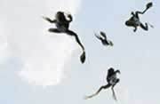 Populasi kodok cukup banyak di Jerman dan Denmark meledak pada April 2005 pada aksi yang digambarkan sebagai mekanisme pertahanan diri yang gagal, ktika kodok-kodok itu menggembungkan diri agar terlihat lebih besar saat diserang burung gagak.