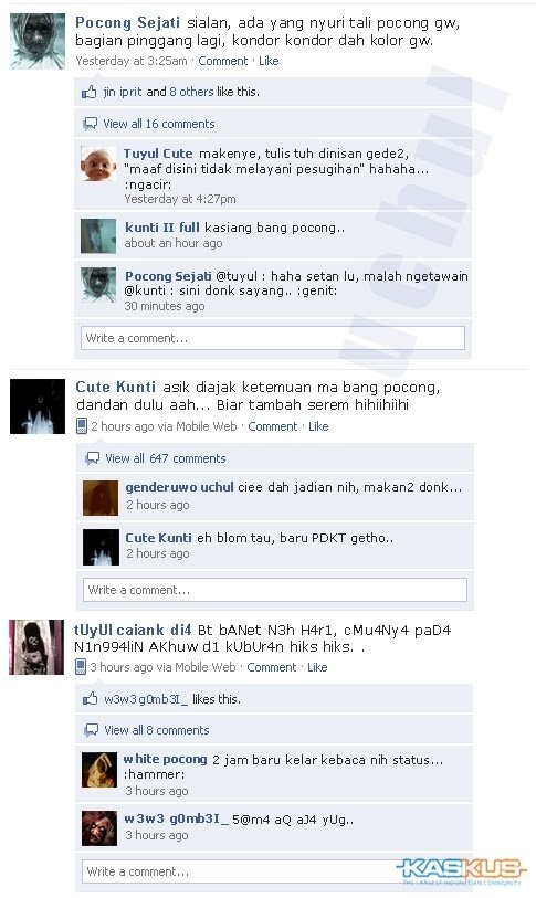 Ada Hantu Maen Facebook (^_^) Disember 13, 2025Mac 24, 2013 by indonesia bloger Narayana 734 – Buat para fesbuker, sekarang harus lebih hati-hati. Bukannya ada razia dari pak satpol ato ada penggusuran, tapi karena ada hantu di Facebook. Coba lihat deh percakapan mereka. Selayaknya manusia mereka saling ngerjain satu sama lain… Sumber