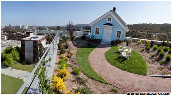 Namun yang membezakan adalah lokasinya yang berada di tingkat tujuh ,  kedudukannya tepatnya di hujung beranda bangunan Universiti California, San Diego. Rumah dengan warna luaran biru langit itu telah menarik banyak perhatian dan membuat pemandangan disekitarnya nampak aneh.