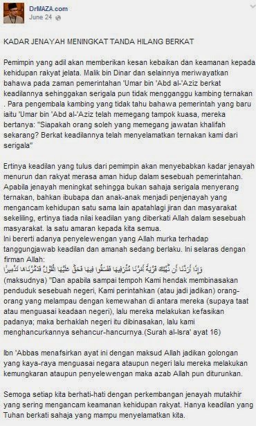 Mungkin ini yang di maksudkan oleh Dr. Asri apabila negara hilang berkat..
