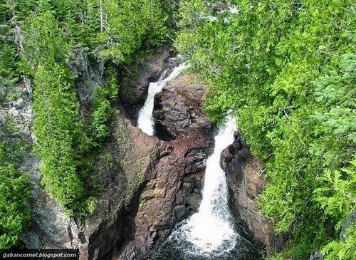 Salah satu air terjun ini agak istimewa. Kira-kira 2.4 km sebelum mengalir ke Tasik Superior, ia berpecah dalam dua oleh saluran berbatu. Bahagian timur jatuh 50 kaki ke bawah dan terus ke arah Lake Superior. Bahagian barat jatuh 10 kaki ke dalam lubang di gergasi – Devil ‘s Kettle – dan hilang. Tiada siapa yang tahu ke mana air itu pergi.