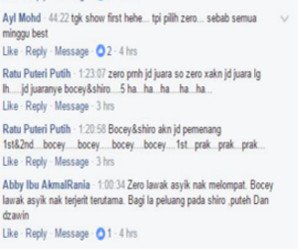 Tempat ketiga, menjadi milik Bocey dengan 1,717 undian, diikuti Dzawin yang memperoleh 793 undian dan Puteh di tempat kelima dengan 481 undi.