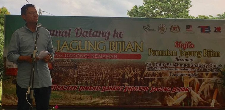 Projek perintis penanaman jagung bijirin buat pertama kalinya telah mendapat peruntukan khas di dalam Bajet 2017 melalui Kementerian Pertanian dan Industri Asas Tani. Peruntukan itu bagi menambah nilai dan meluaskan lagi pembangunan projek pe�rintis tersebut dalam usaha mengurangkan kebergantungan import makanan ternakan. Menurut Pengarah Pertanian Negeri Terengganu Tn Hj Nasir Warris (Sila lihat foto disebelah), projek perintis yang telah dibangunkan di Kampung Dadong, Kemaman, Terengganu dan Kedah itu melibatkan kerjasama Jabatan Pertanian dengan syarikat Green World Genetics Sdn. Bhd. (GWG) yang berperanan membimbing petani dan menawarkan jaminan pembelian hasil. Katanya syarikat GWG adalah sebuah syarikat peneraju dalam program Bidang Ekonomi Utama Negara (NKEA) Pertanian di bawah Projek Permulaan (EPP) 14, iaitu Pembangunan Industri Benih dan salah satu penyelidikan yang dijalankan ialah penghasilan benih variety jagung bijirin yang sesuai dengan tanah dan iklim di negara ini. Dalam pada itu menurut Ketua Pegawai Eksekutif GWG, Dr. Chua Kim Aik, beliau gembira kerana kerajaan akhirnya mengambil satu langkah ke hadapan bagi memajukan penanaman jagung bijirin untuk ternakan bagi memastikan negara dapat mengurangkan kebergantungan sumber import. Malaysia kini mengimport 100 peratus makanan ternakan. Projek ini cukup bagus untuk dibangunkan dan sememangnya perlu diberi perhatian serius ke�rana jagung tidak memerlukan kawasan yang luas untuk mendapatkan pulangan menguntungkan. Kjian menunjukkan dimana jagung bijirin hanya memerlukan 450,000 hektar untuk mencapai hasil pengeluaran sebanyak 3 juta tan dan Malaysia mempunyai banyak tanah terbiar yang boleh digunakan untuk penanaman jagung. Bagi tujuan tersebut pihak syarikat turut menghasilkan lapan variety jagung bijirin antaranya GWG 111 dan GWG 888. Kini beliau mendakwa dimana varieti jaug bijirin tersebut adalah sesuai untuk iklim tropika. Oleh itu sejauh mana ia akan berjaya bergantung kepada cuaca, selain keadaan tanah dan juga cara untuk pengurusan ladang. Bagi menentukan keselamatan dalam makanan, Malaysia perlu membangunkan benih sendiri dan dari sebab itu kini GWG memainkan peranan menjalankan penyelidikan bagi menghasilkan benih bersesuaian. GWG telah menghasilkan benih untuk jagung bijirin, tembikai, ja�gung manis, sawi, tomato dan banyak lagi. Projek terkini penanaman jagung bijirin juga adalah satu peluang besar kepada golo�ngan muda yang ingin menjadi usahawan tani. Menurut Nasir pertanian kini merupakan satu cabang perniagaan yang berpotensi besar untuk dimajukan dan dijadikan kerjaya.