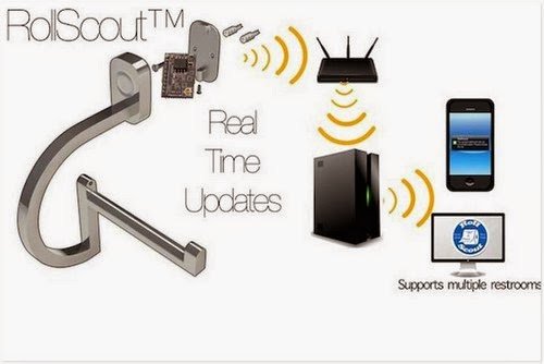 Dengan peranti bijak ini, anda tidak perlu lagi mengalami masalah kerana kehabisan kertas tisu tandas. RollScout, adalah tempat tisu tandas menggunakan tenaga bateri yang memantau jumlah kertas tandas yang tertinggal pada peranti dengan emitter dan sensor inframerah.