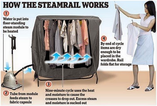 Nampaknya, kerja menggosok baju akan menjadi lebih mudah selepas ini apabila sebuah syarikat di Britain iaitu Displaysense mencipta sebuah alat yang diberi nama SteamRail sebagai pengganti seterika yang boleh menghilangkan kedutan 35 pakaian dalam masa sembilan minit.