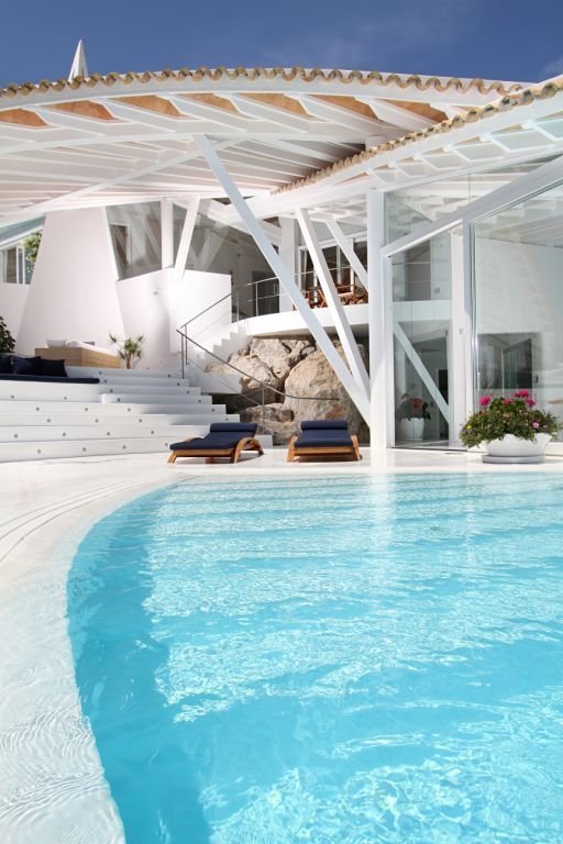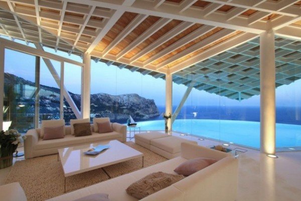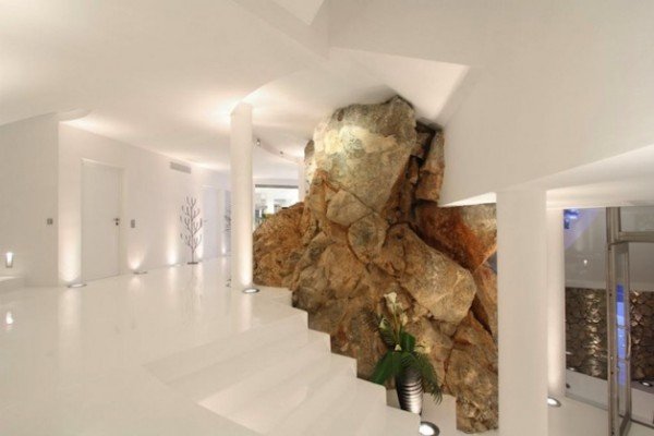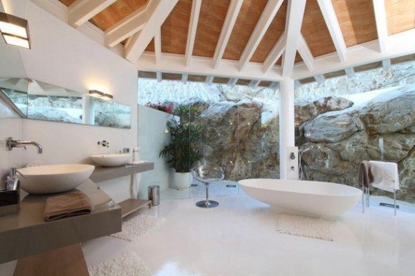 The decks are lit at night, creating such a magical atmosphere along with the crystal clear water in the pool. Definitely it’s the perfect ambient for a successful party, where luxury abounds from everywhere. The rooms are very airy and some of them incorporate the natural landscape, like the bathroom, surrounded by a glass wall showing a massive rock, part of the cliff on which the house is placed. In rest, it’s the land of luxury and refinement.