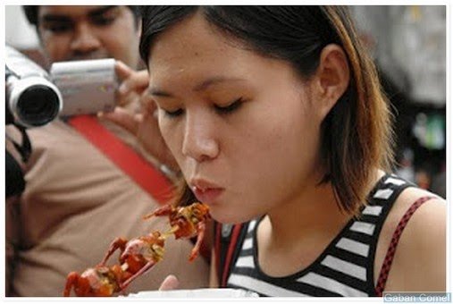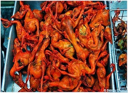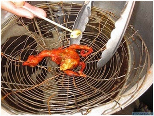 Sajian anak ayam goreng ini sangat ringkas. Hanya dengan sapuan mentega dan diletakkan lidi seperti satay, dan digoreng. Harga untuk secucuk hanya 6 peso.
