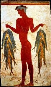 In the 1900s, British archaeologist Sir Arthur Evans excavated and restored the ruins at Knossos on the island of Crete. Beautiful and delicate frescoes of bulls and dolphins revealed a highly artistic civilization and a people who apparently lived in harmony with nature.