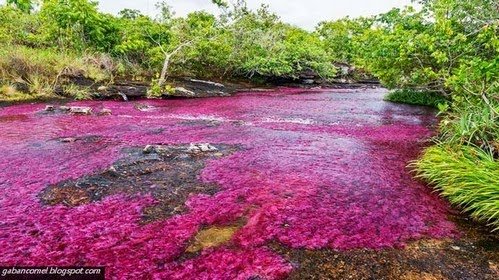 Sungai di Colombia yang bernama Cano Cristales mungkin salah satu sungai yang terindah di dunia. Terkenal dengan “pelangi cair”, Cano Cristales menyajikan pemandangan air dengan warna yang sangat spektakuler. Kondisi alam yang masih murni membuat sungai di daerah selatan Bogota itu sungguh indah.
