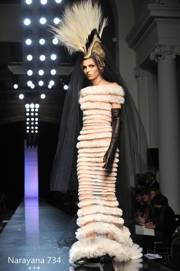 | Andrej Pejic memperagakan baju rancangan Jean-Paul Gaultier pada Paris Haute Coutture Fashion Week Spring/Summer 2011 di Paris, Perancis. |