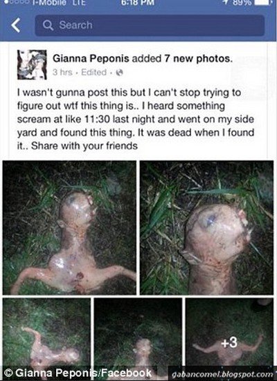 “Aku tidak ingin memuat naik foto ini tapi aku tidak boleh berhenti meneka apa ini sebenarnya,” tulis Gianna di laman Facebooknya. “Aku mendengar suara teriakan sekitar pukul 11.30 tadi malam dan keluar menuju halaman dan mencari makhluk ini. Ini sudah mati semasa aku menemuinya. Berkongsi dengan rakan anda.”