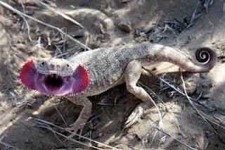 Jenis kadal unik yang pertama adalah Phrynocephalus yang juga disebut Toadhead Agama, kadal kecil yang tinggal di gurun ini menunjukkan beberapa perilaku anehnya. Mereka berkomunikasi satu sama lain dengan menurunkan dan menaikkan ekor mereka, tubuh mereka bergetar saat mengubur dirinya sendiri dengan cepat di pasir dan akan menakut-nakuti predator dengan tampangnya yang aneh sekaligus sangar, mulut yang berwarna-warni, terlihat di sini.
