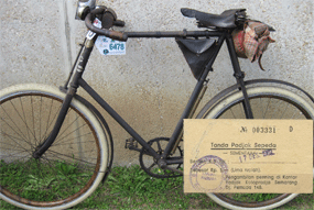Jakarta Tokubetsu Shichoo mempermaklumkan bahwa: Pajak sepeda buat tahun 1945, banyaknya f 1,-atau f 0,75 harus dilunasi sebelum tanggal 1 bulan 3 tahun 1945;
