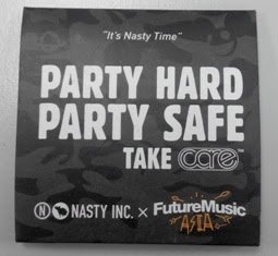 Kondom berkenaan yang diletakkan dalam pek ringkas berwarna hitam yang tertera logo ‘Future Music Asia 2014′ dengan tema ‘Party Hard, Party Safe, Take Care’. Pek berkenaan diletakkan satu kondom serta memaparkan cara penggunaan.