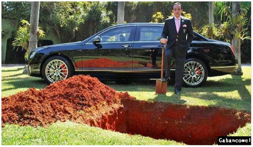 Dia menulis: �Kepada mereka yang meragui saya, semalam saya sudah mula menggali lubang di taman untuk menanam Bentley saya! Hujung minggu ini, saya akan menanamnya.�