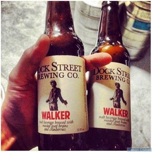 Salah satu variasi bir di buat oleh TV Show popular The Walking Dead , Dock Street Brewing Co yang berpusat di Philadelphia . Untuk merayakan berakhirnya acara TV show tersebut , mereka mencipta bir zombie versi mereka sendiri , iaitu bir yang dibancuh dengan otak kambing .