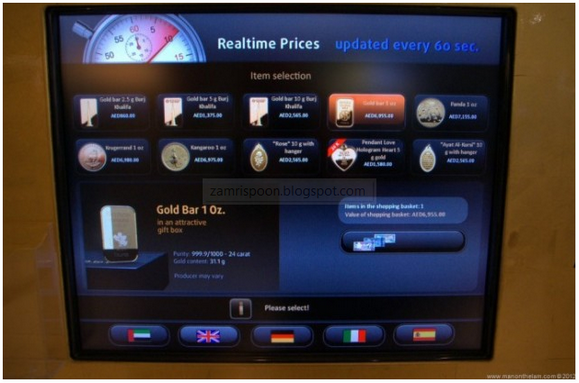 Sebuah syarikat berasal dari Jerman hadir dengan inovasi baru: Gold to Go Machine, mesin penjual emas pertama yang hanya boleh didapati di Dubai Mall, UAE.