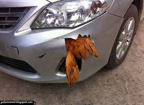 Namun pernahkah anda membayangkan bahawa seekor ayam yang melanggar kereta boleh membuat bumper kereta berlubang? Atau ayam itu yang akan cedera?