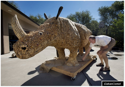Dua pasangan di California, Jim dan Mary Lambert dari Carmichael, dan Bob dan Di Nelson dari Fair Oaks, telah menghabiskan tiga tahun untuk membuat patung badak dari 12,000 penutup botol anggur (wine cork).