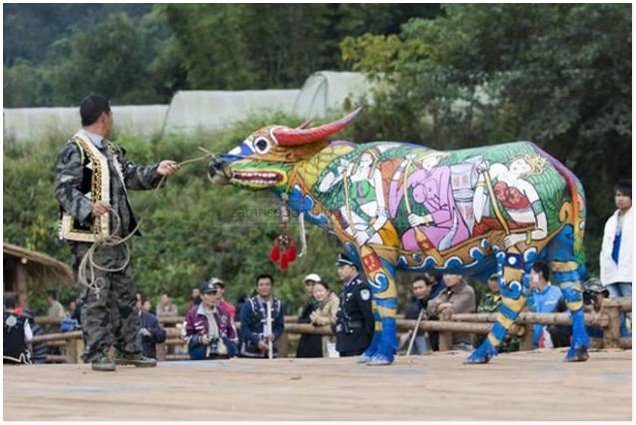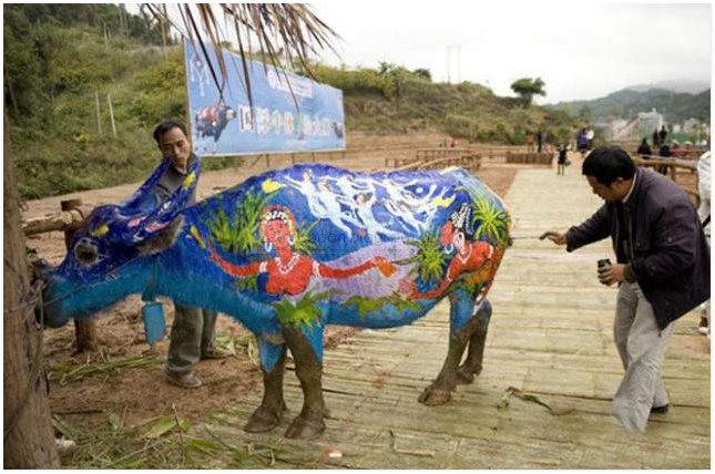 Aktiviti melukis badan kerbau ini merupakan satu perayaan yang diadakan secara besar-besaran. Orang-orang kampung yang tinggal di kampung Jiangcheng yang terletak di Yunnan China akan melukis karya seni pada kerbau-kerbau mereka dengan pelbagai warna dan dihiaskan dengan menarik pada perayaan ini.