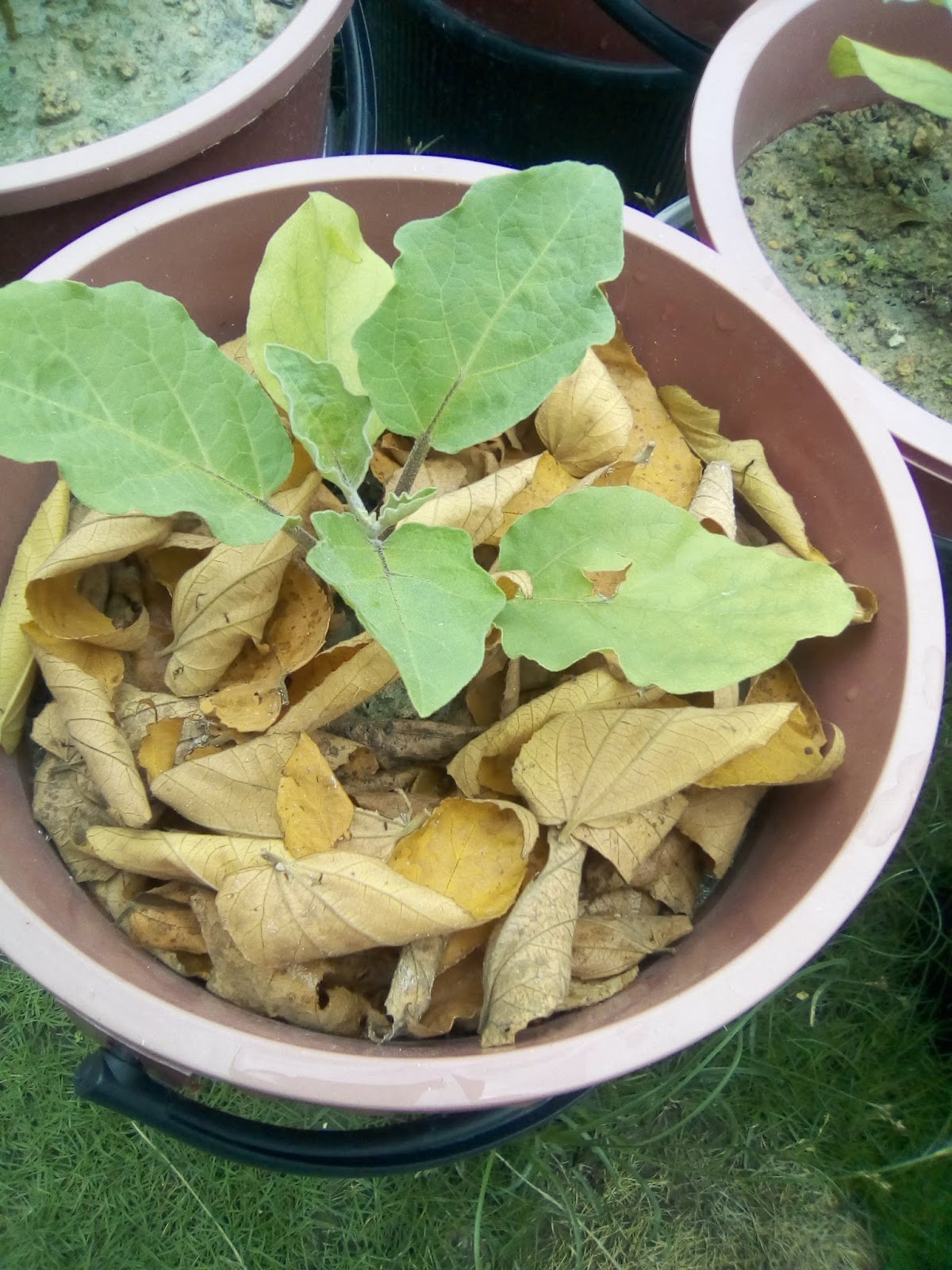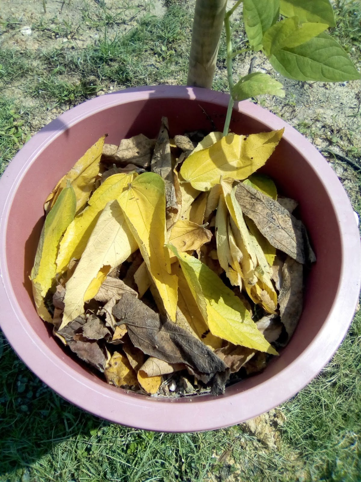 29.3.17 : daun ceri tua yang berwarna kuning amat senang mereput dan sesuai untuk menyuburkan tanah selain sebagai sungkupan.
