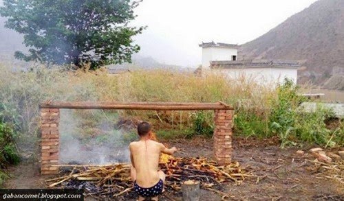 Keterbatasan dana membuat lelaki berasal dariYunnan, China ini nekat memanggang dirinya di atas api bersuhu lebih dari 42 darjah celcius. Baginya, memanggang tubuh ada cara terbaik agar ia boleh melawan sel kanser darah yang boleh membunuh dirinya.