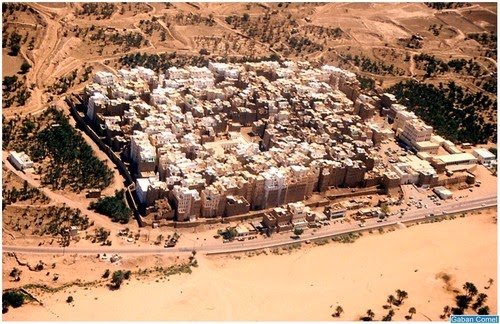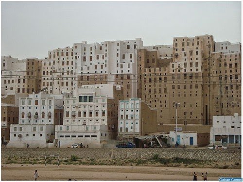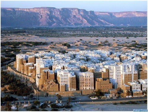 The city of Shibam, yang terletak di kawasan barat Hadhramaut Governorate dalam padang pasir Ramlat al-Sab`atayn, terkenal dengan bangunan pencakar langit yang menjulang tinggi yang mudbrick. Pekan kecil penuh dengan kira-kira 500 buah rumah berdiri di antara 5 hingga 11 tingkat dan mencapai 100 kaki tinggi, semua dibina sepenuhnya daripada batu bata dari lumpur. Bangunan tinggi di bandar ini telah “Shibam moniker” telah mendapat gelaran “Manhattan Gurun.”