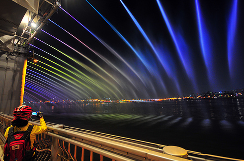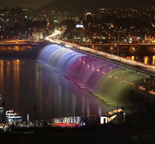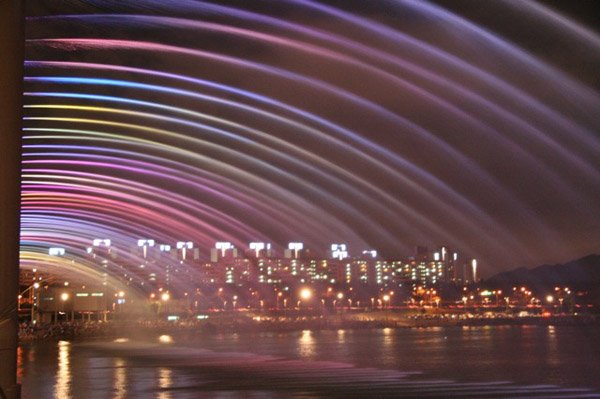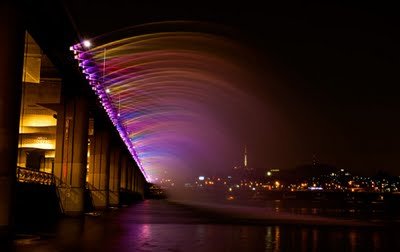 Jambatan Banpo (Banpo Bridge) adalah jambatan utama di pusat bandar Seoul yang melalui Sungai Han, Korea Selatan, menghubungkan Seocho dan daerah Yongsan. Jambatan Banpo terletak di atas Jamsu Bridge, membentuk jambatan “dua tingkat”. Apabila paras air naik terlalu tinggi, Jambatan Jamsu akan ditenggelami air dan ditutup. Apa yang menarik tentang jambatan ini adalah The Moonlight Rainbow Fountain, pancutan air terpanjang di dunia yang memasuki Guinness World Record. Untuk mencantikkan pemandangan terutamanya pada waktu malam, hampir 10,000 LED dipasang di kedua-dua belah jambatan yang sepanjang 1140 meter itu. Fountain itu memancutkan 190 tan air per minit. Air dipam terus dari sungai itu sendiri dan secara berterusan dikitar semula. Jambatan tersebut mempunyai 38 pam air dan 380 muncung ke atas di kedua-dua sisi jambatan. Dibawah ini adalah gambar-gambar menarik dari jambatan tersebut: