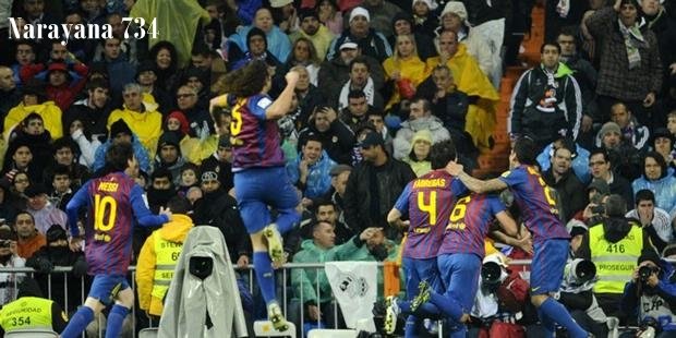 Narayana 734 – Rekor 11 kemenangan beruntun Real Madrid di Liga BBVA terhenti di tangan Barcelona. Bermain di Santiago Bernabeu, Sabtu atau Minggu (11/12/2011) dini hari WIB, Madrid ditekuk dengan skor 1-3 oleh tim asal Catalan tersebut. Hasil ini juga sementara mengkudeta posisi Madrid dari puncak klasemen.