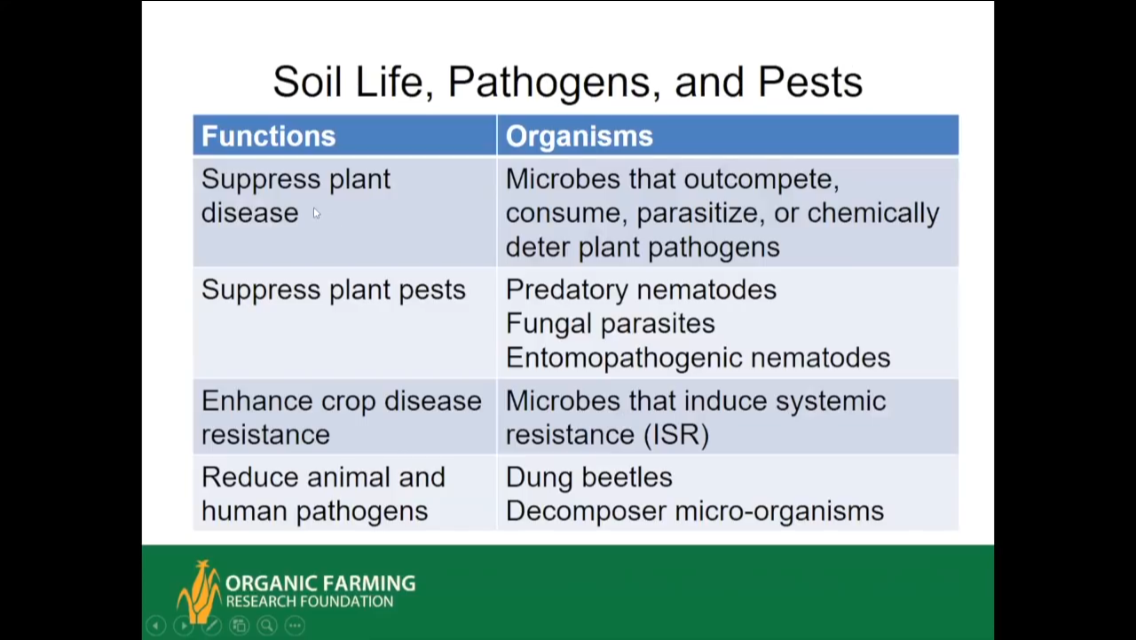 Jaringan / Rantaian Makanan Tanah ( Soil Food Web ) yang sempurna akan mengimbangi populasi organisma perosak berbanding organisma berguna. Tanaman yang sihat juga akan membekalkan makanan keperluan organisma tanah lebih banyak berbanding tanaman yang sakit.