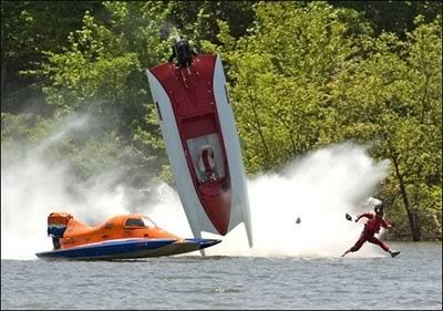 13. Sebuah kecelakaan kompetisi powerjet di amerika. dengan sudut dan waktu pengambilan gambar membuat sang supir terhempas ke luar kokpit dan terlihat seperti berjalan di air. dan taukah kamu, itu pasti sakit sekali