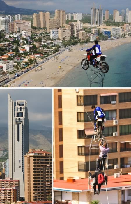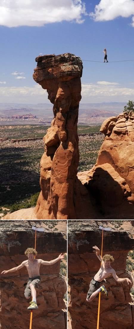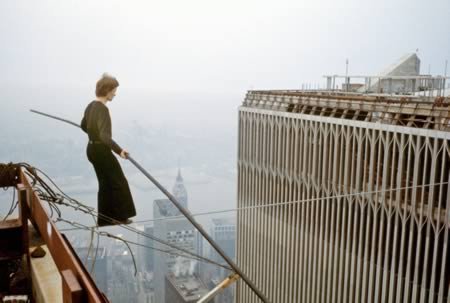 | Frenchman Philippe Petit stunned the world in 1974 when he strung a cable across New York City’s twin towers and walked across. (Link) |