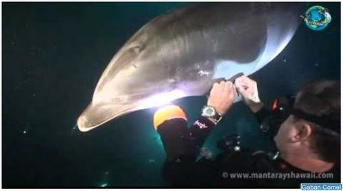 Ketika menyelam pada waktu malam pada bulan Januari lalu di Gadren Eel Cove di Kailua � Kona , Hawaii, tiba-tiba seekor lumba-lumba yang tercedera, terbelit tali pancing mendekati penyelam scuba, Keller Laros untuk meminta pertolongan. Peristiwa ini menunjukkan bahawa ikan Lumba-lumba adalah mahkluk dengan intelegensi tinggi dan ia percaya kepada manusia.