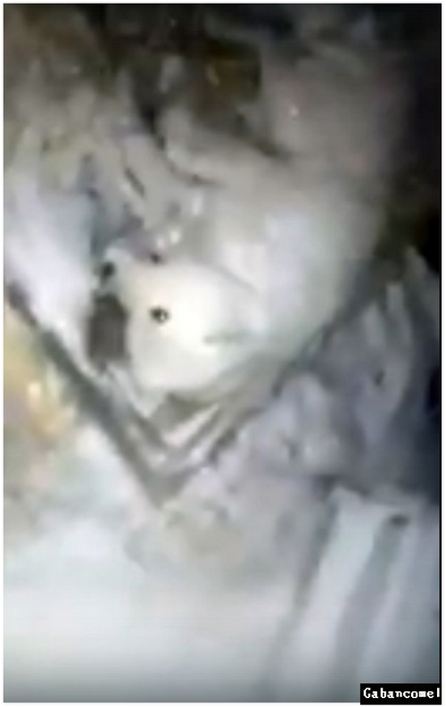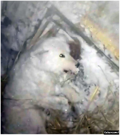Beberapa keping gambar menyentuh hati menunjukkan mata anjing betina berbulu putih itu masih terbuka dan kelihatan takut, manakala kakinya mencakar-cakar minta dilepaskan.