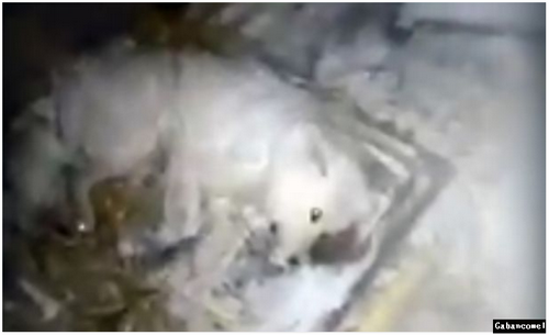 Beberapa keping gambar menyentuh hati menunjukkan mata anjing betina berbulu putih itu masih terbuka dan kelihatan takut, manakala kakinya mencakar-cakar minta dilepaskan.