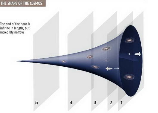 Menggunakan sebuah peralatan canggih milik NASA yang bernama Wilkinson Microwave anisotropy Prob (WMAP), mereka menemui hasil kajian yang sangat memeranjatkan kerana menurut hasil kajian tersebut alam semesta ini adalah berbentuk seperti trompet. Di mana pada bahagian hujung belakang trompet (alam semesta) merupakan alam semesta yang tidak boleh diamati (unobservable). Sedangkan bahagian depan, di mana bumi dan seluruh sistem suria berada merupakan alam semesta yang masih boleh diamati (observable). Lihat gambar bentuk alam semesta dibawah ini: