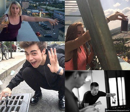 Seperti bergaya seolah akan menjatuhkannya dari bangunan tinggi, lubang longkang, dari atas jambatan atau tandas. Jika gagal, telefon pintar canggih pun harus direlakan masuk ke lubang.