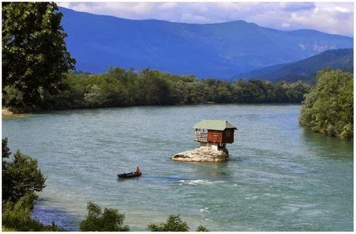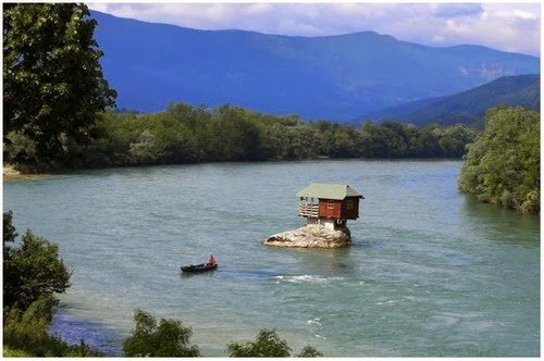 Jika anda suka kesunyian, rumah ini mungkin boleh buat anda gembira. Terletak di sungai di tengah Sungai Drina di Serbia, rumah satu bilik ini dibina pada 1968. Meskipun dihentam banjir dan angin, rumah ini tetap bertahan melawan waktu. Bangunan ini terletak berhampiran bandar bajina Basta menjadi tarikan buat para pelancong di kawasan tersebut;