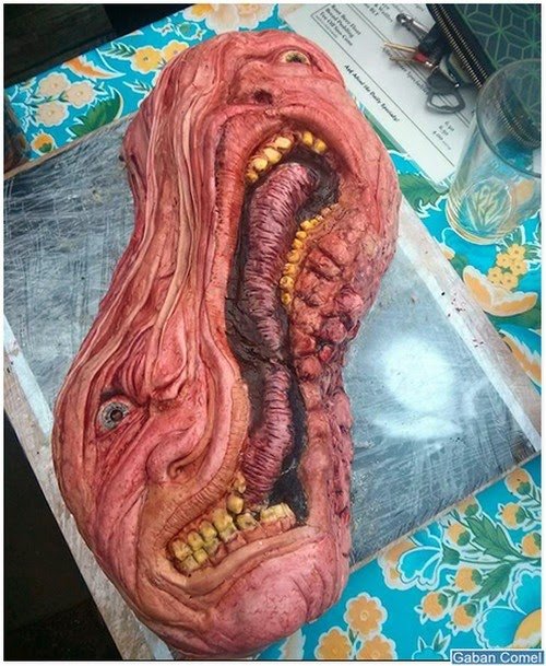 Untuk mengejutkan teman lelakinya pada hari jadinya, seniman berasal dari San Francisco, Vicky Knoop memutuskan untuk membuat kek harijadi berbentuk wajah terbelah dua dari filem seram 1984, The Thing. Hasilnya adalah sebuah kek yang benar-benar menyeramkan.