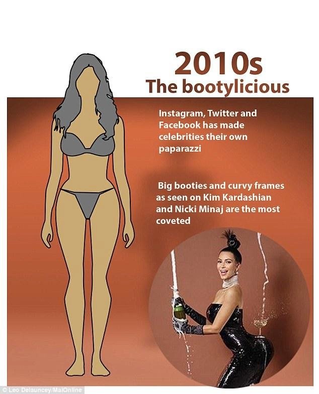 Narayana 734 – Sebelum Kim Kardashian menghiasi berbagai majalah dan mengatakan dirinya bangga dengan tubuh booty-nya atau jauh sebelum itu, Kate Moss sangat digilai banyak perempuan karena tubuh skinny, body image perempuan memunyai cerita berbeda. Dalam 100 tahun terakhir, body image mengalami perubahan. Bagaimana perubahannya? Cek di bawah ini.